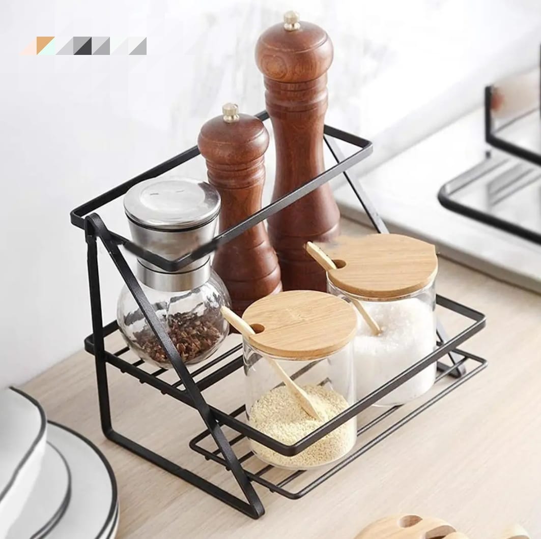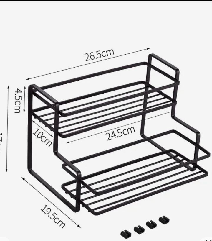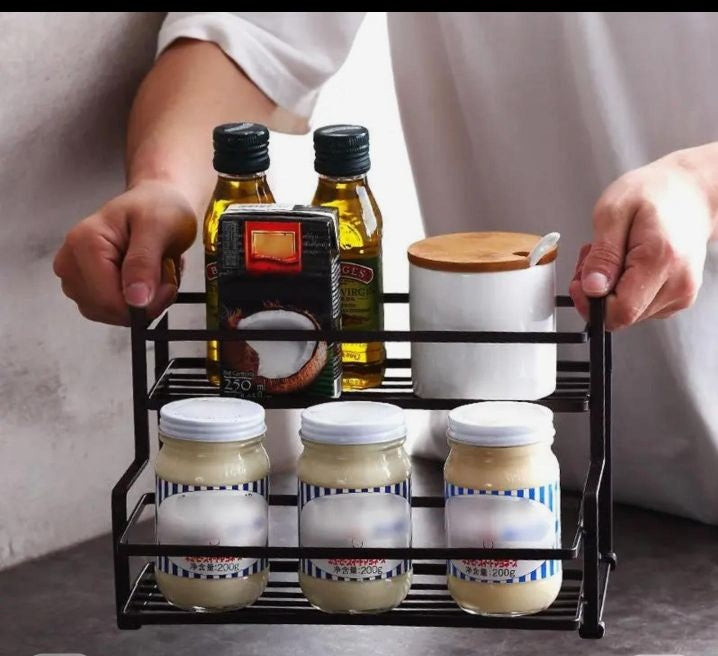 This 2 Tier Metal Spice Rack Organizer is perfect for adding both functionality and style to your kitchen. Made from durable iron with a sleek black and white finish, it provides versatile storage for kitchen seasonings, jars, and small accessories. With dimensions of 7.8"D x 7.8"W x 6.63"H, this compact organizer features two spacious shelves to keep your items neatly arranged and easily accessible. The tiered design maximizes vertical space, making it ideal for kitchens with limited counter space. This rack can also be used as a washroom or desktop organizer, providing a stylish solution for any room.